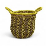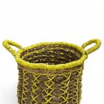 Un canasto vibrante que fusiona el tejido tradicional con detalles en amarillo intenso, aportando personalidad y frescura a cualquier rincón exterior.