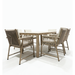 | Composición | Estructura de aluminio, tejido en cuerda náutica, cojines en textil sintético y mesa con cubierta de piedra sinterizada. |